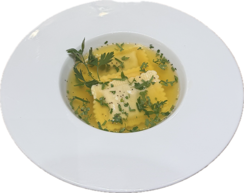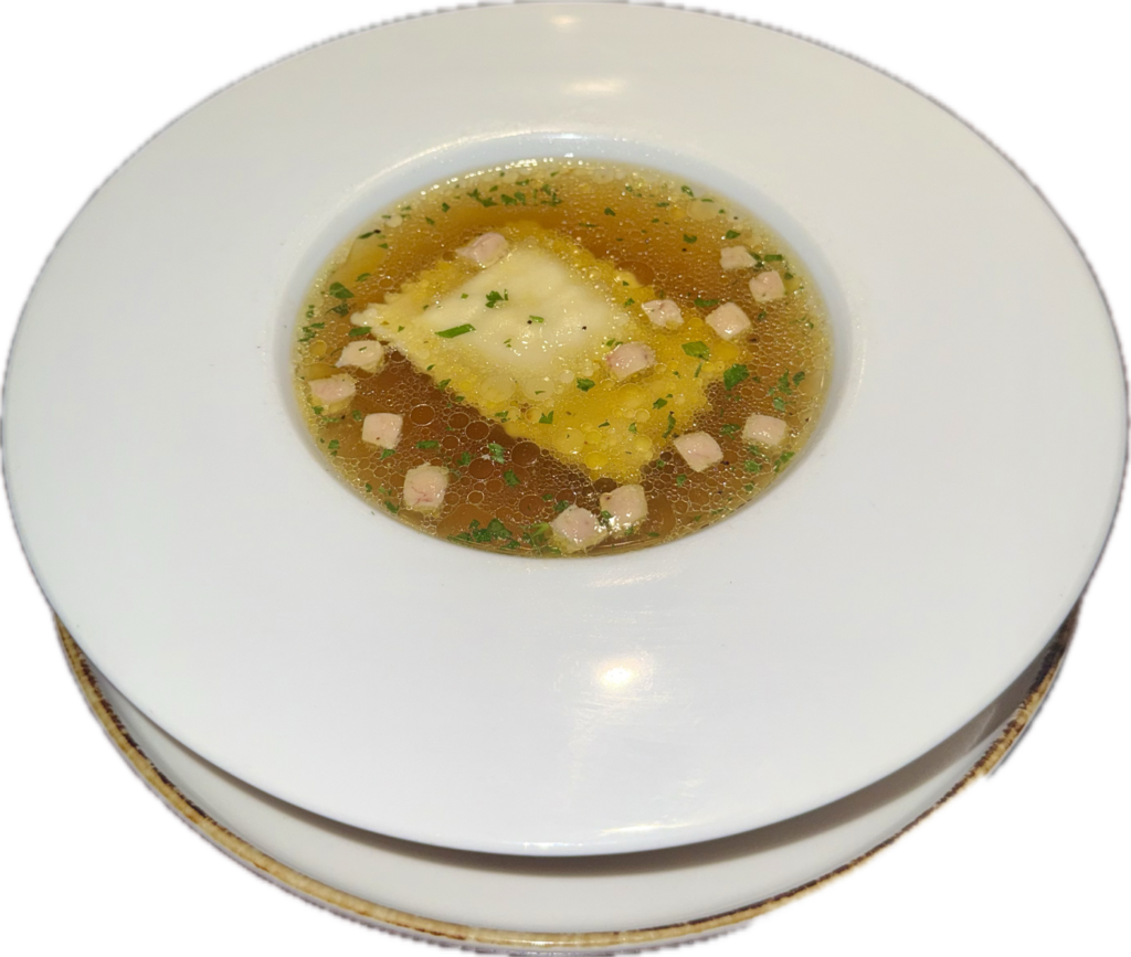 marhahúsleves | bélszín ravioli | sáfrány | friss petrezselyem